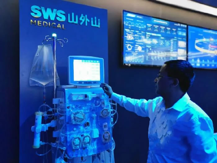 尊龙凯时公司携自主研发的高端智能医疗设备——SWS-5000系列连续性血液净化设备亮相智博会,展现智能建造大数据应用风采。