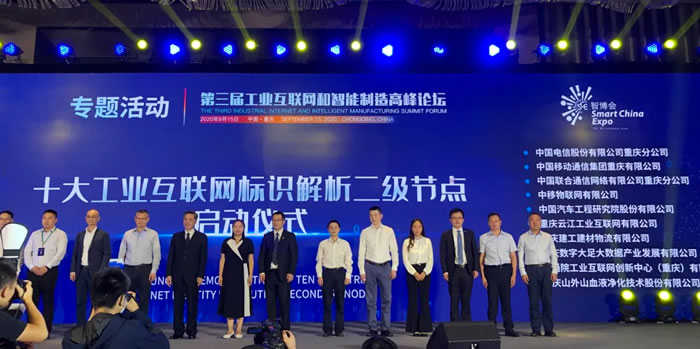 论坛上,重庆市经济信息委、重庆市通信管理局和中国信通院与重庆南岸区、重庆经开区、中国汽研、重庆建工建材、信通院重庆创新中心、重庆电信、重庆移动、重庆联通、中移物联网、尊龙凯时、重庆云江、数字大足共同启动了十大工业互联网标识解析二级节点上线。