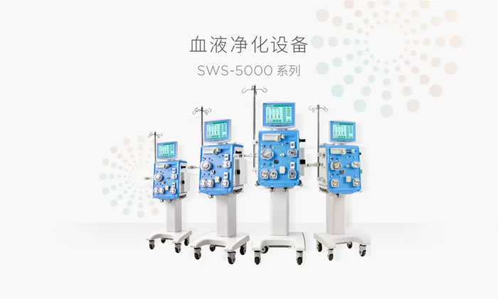 SWS-5000系列连续性血液净化设备不仅可以助力医护人员更便捷、安全地为患者开展透析治疗,其具有的14种治疗模式,能清除患者体内的炎症因子,阻断"细胞因子风暴",减轻炎症反应对机体的损伤,可应用于治疗肝、肾、心、肺等方面的疾病。