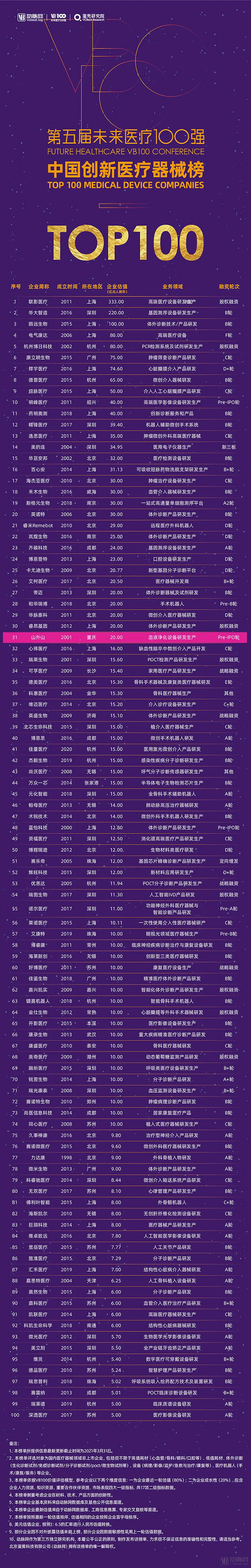 会上,医疗领域专业服务机构及媒体动脉网与蛋壳研究院联合发布了《2020-2021未来医疗100强系列榜单》。未来医疗100强系列榜单旨在遴选真正代表未来医疗的中国创新医疗者,发现我国未来医疗产业的核心力量,推动健康医疗产业的创新变革进程。其中,中国创新医疗器械榜的企业筛选侧重考虑材料、技术、产品方面的创新性。