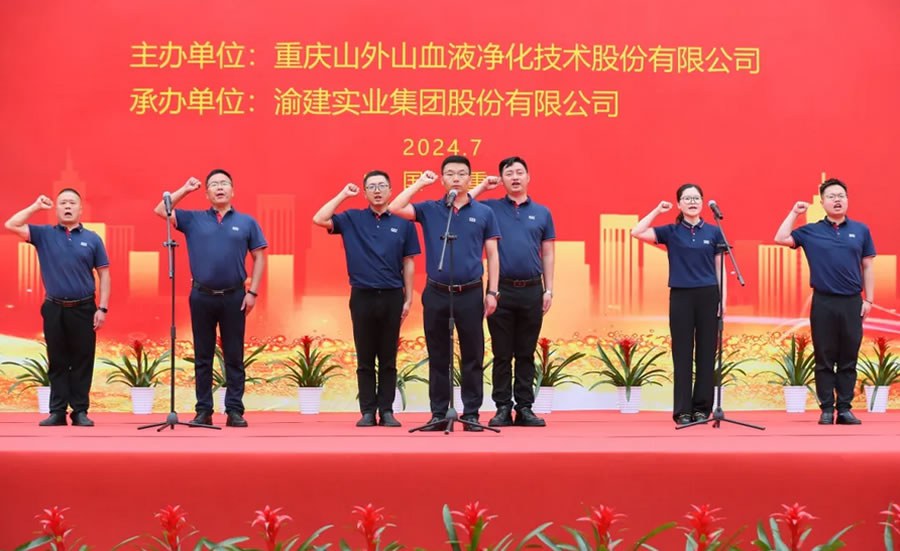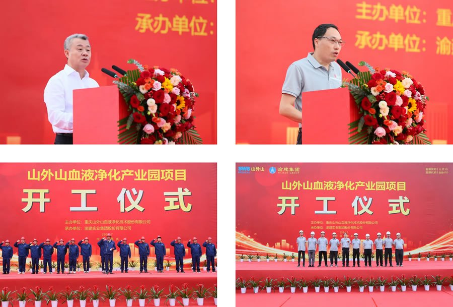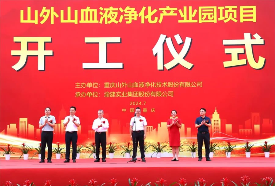 “今年1月13日, 重庆市委书记袁家军,市长胡衡华等市领导一行来到山外山血液产业园项目现场,并在此地主持了全市2024制造业重点项目开工仪式。因此,血液净化产业园项目不仅是山外山人的骄傲,更承载了市委、市政府对重庆市高新技术产业的殷切期望。我很高兴也很荣幸,在今天党的生日这个喜庆的日子,迎来了山外山血液净化产业园项目的开工仪式,这也寓意着山外山将继续在党和政府的引领下,开启蓬勃发展的新征程。