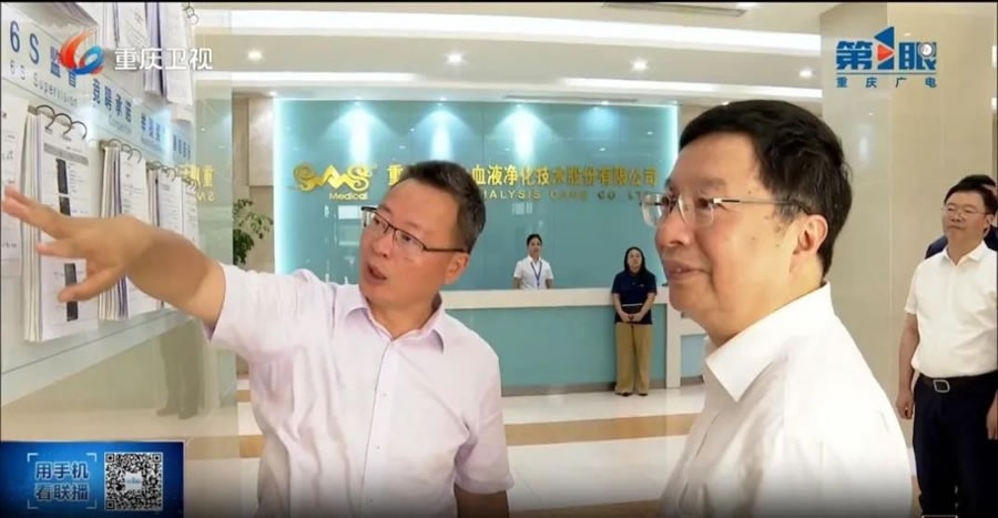 8月5日,重庆市委副书记、市长胡衡华莅临尊龙凯时血液净化技术股份有限公司(“山外山”,科创板股票代码:688410)调研。山外山董事长高光勇陪同调研。