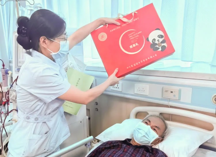此外,中秋佳节将至,为了让Fong先生感受到节日的喜悦,山外山血液透析门诊部为其送上了月饼礼盒。月饼寄语团圆,虽然只是一份小小的心意,却能让Fong先生感受到家的温暖。伴随着一声声“中秋快乐”的真挚祝福,门诊部里充满了欢声笑语,场面温馨,其乐融融。
