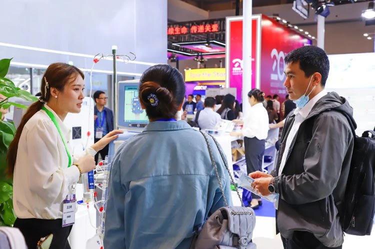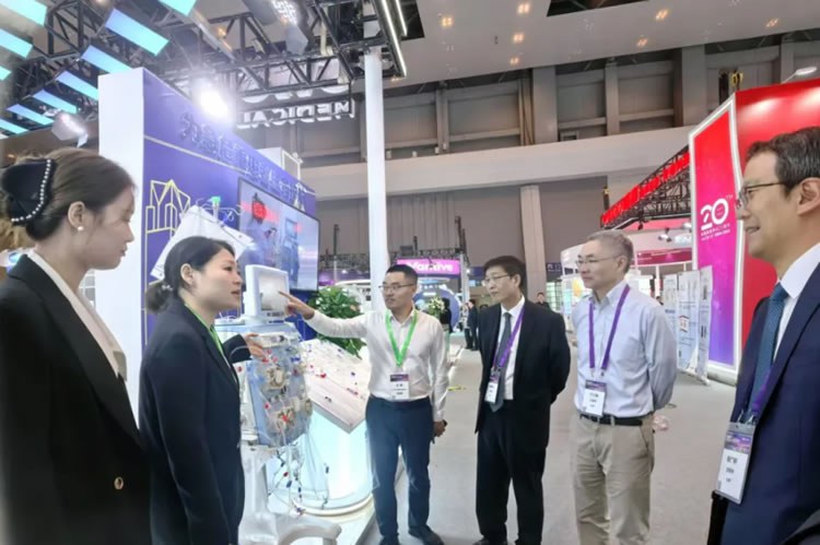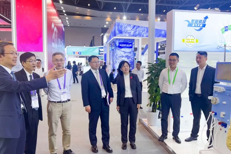 山外山工作人员为每位到访者详细介绍了SWS系列血液净化设备、TN系列血液灌流器、SD系列血液透析器等产品的亮点与优势,产品卓越的性能和广泛的应用场景让在场的专业人士均切身感受到了山外山的创新实力。
