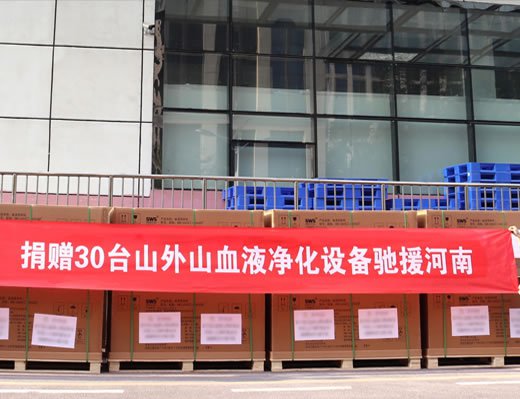 2020年新冠肺炎疫情爆发后,山外山公司被国家发改委、国家卫健委、国家工信部纳入了疫情防控物资重点保障企业目录,并第一时间向湖北省各大医院输送了数百台SWS-5000系列连续性血液净化设备以及CRRT配套耗材,对挽救新冠肺炎危重患者发挥了重要作用。