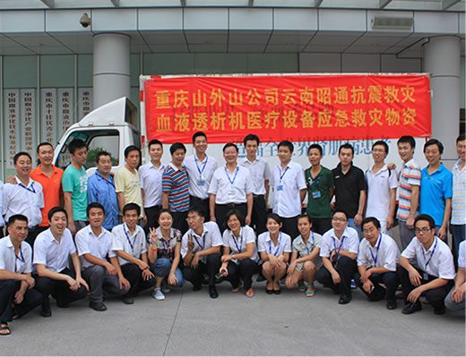 2012年,云南彝良地震后,山外山公司第一时间驰援灾区,为灾区捐赠了价值100万余元的血液透析设备,用爱心架起了生命线。